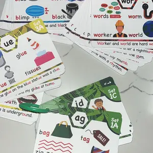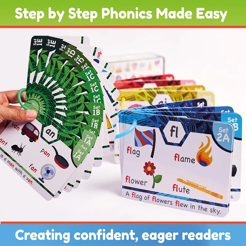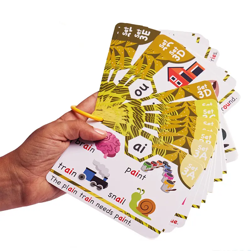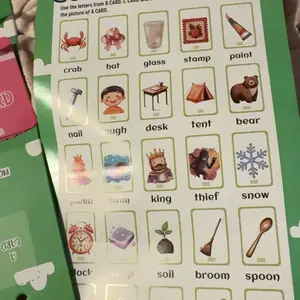 Sturdy, thick cards with visuals to help younger kids with their phonics. My kindergartener will be ready in no time! I also love the little sentences added at the bottom of each card!