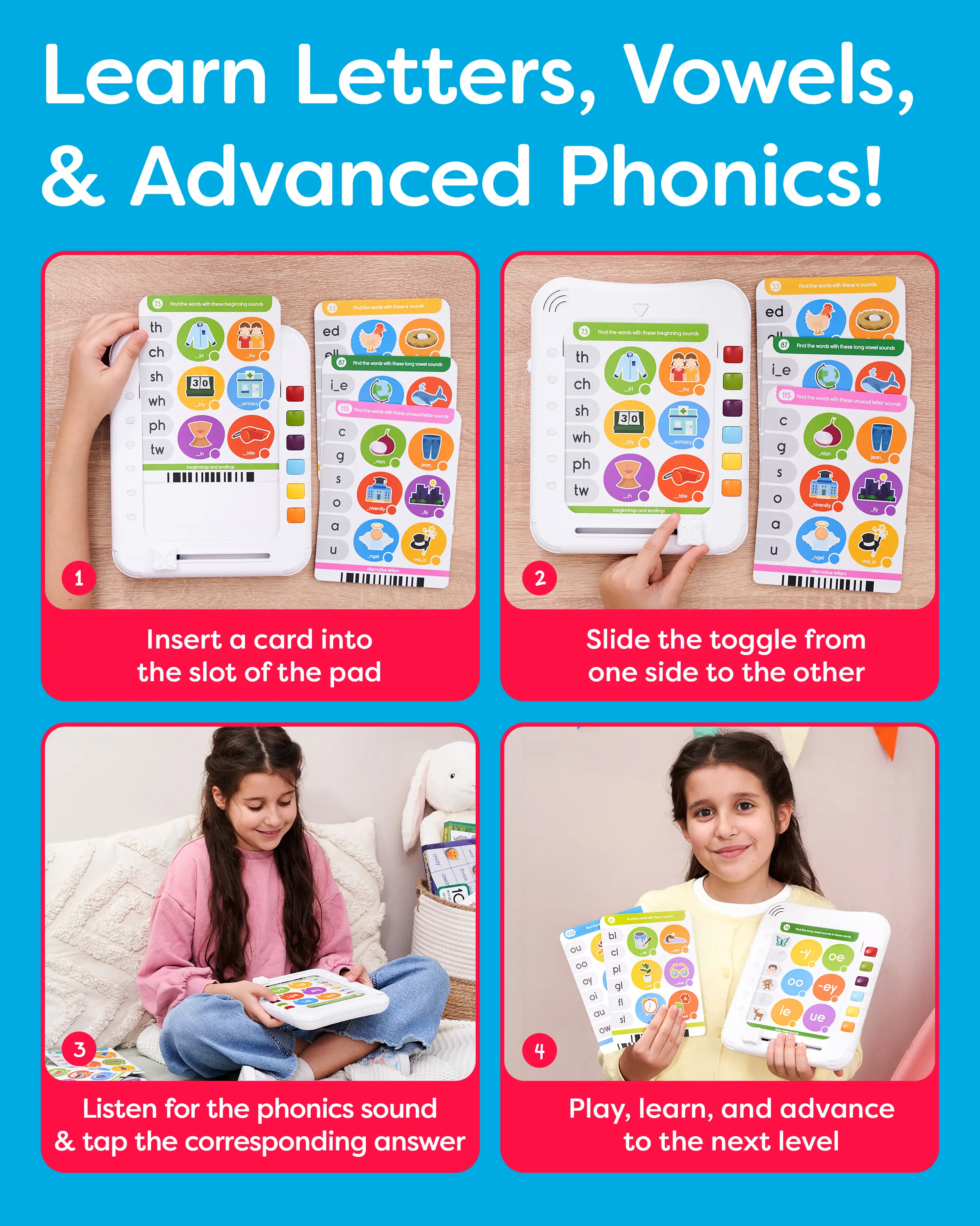 ·THE FASTEST WAY TO PHONICS MASTERY - Teach and Learn Phonics with Audio Sounds, learners get to see the spelling pattern and hear the related phonetic sounds. The audio reinforcement demonstrates the content and solidifies the learning quicker than workbooks.