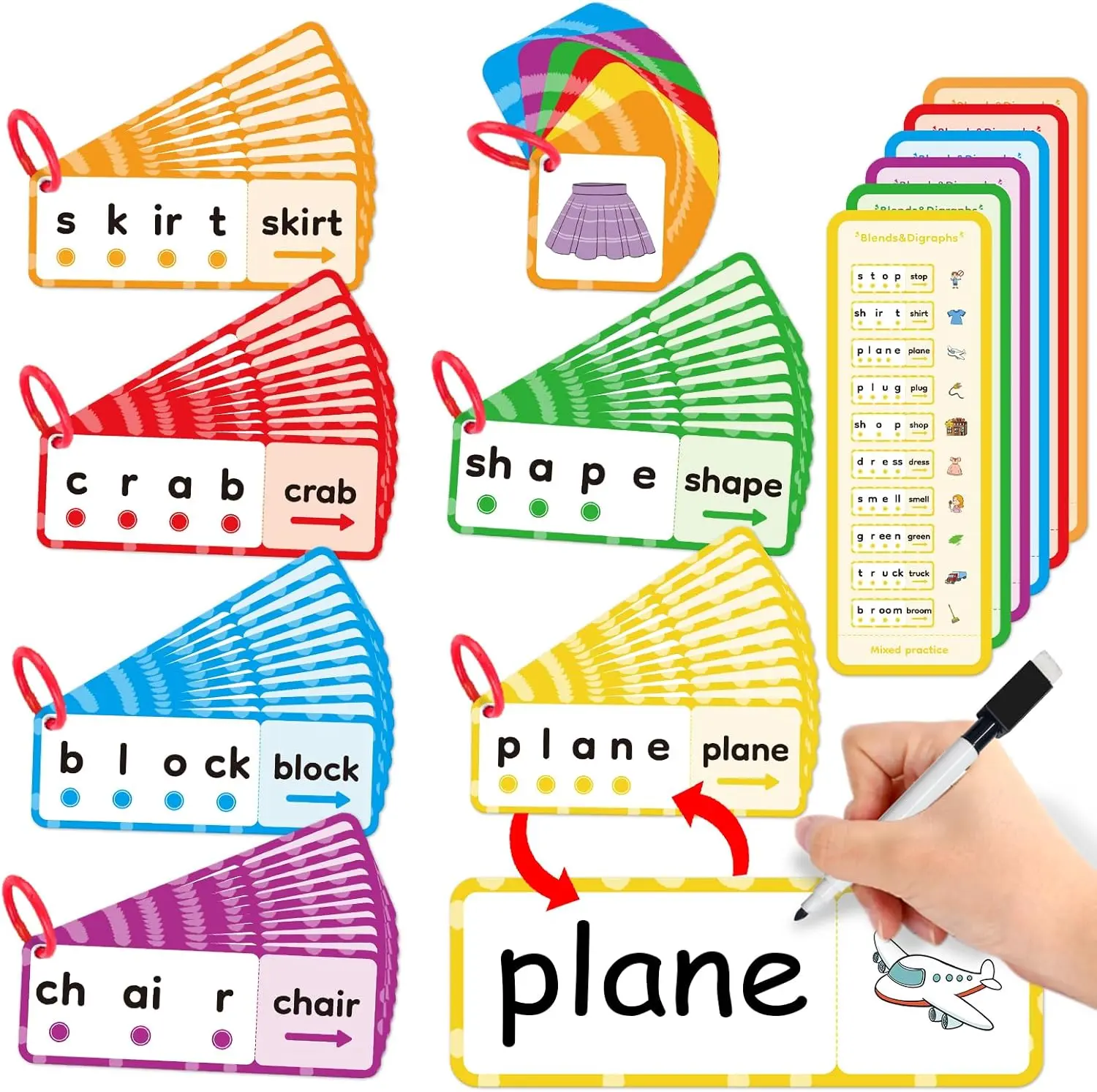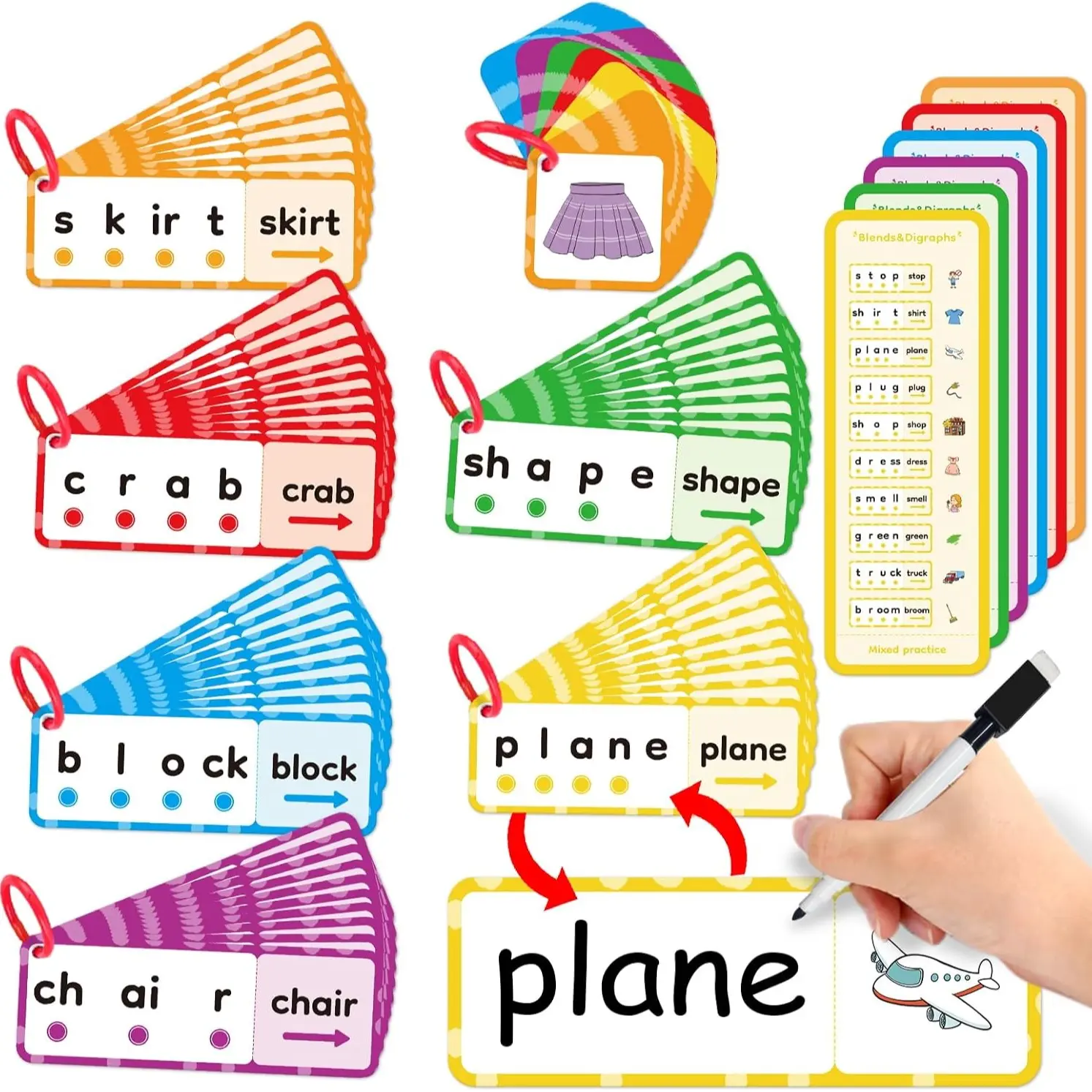 ·【Interactive Dry-Erase Design】The cards are fully dry-erase on both sides. The front side features CVC words with dots, while the back allows learners to write the word associated with the picture, enhancing their spelling skills. The dry-erase feature makes the cards reusable, providing endless learning opportunities.
