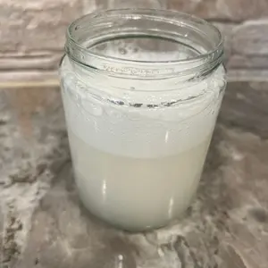 Fluffy and it helps to let it sit for a minute after mixing so the bubbles dissipate.