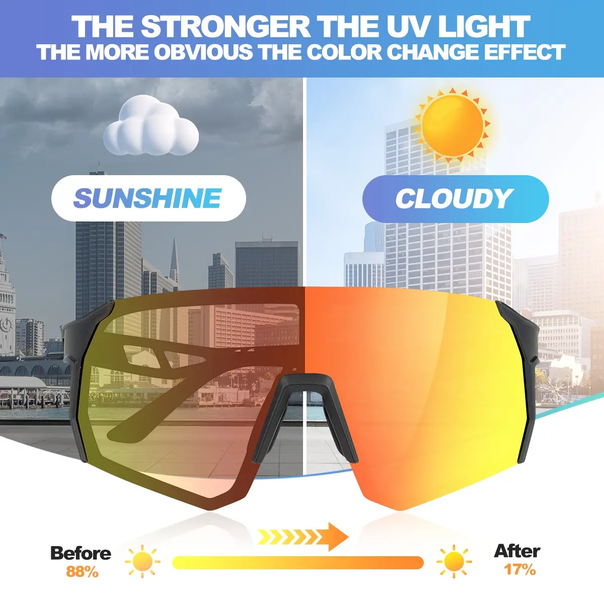 ✔ Photochromic Red Lenses – Automatically adjust tint intensity based on UV exposure for optimal visibility in varying light.