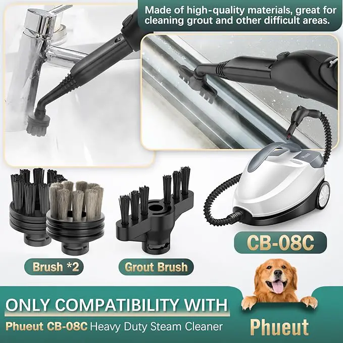 • Brushes & Grout Brush: This pack includes replacement brushes and a grout brush, ideal for multi-surface floor cleaning. Designed specifically for the Phueut CB-08C steam cleaner, these tools ensure your floors stay spotless. Keep your home clean effortlessly with these essential accessories.