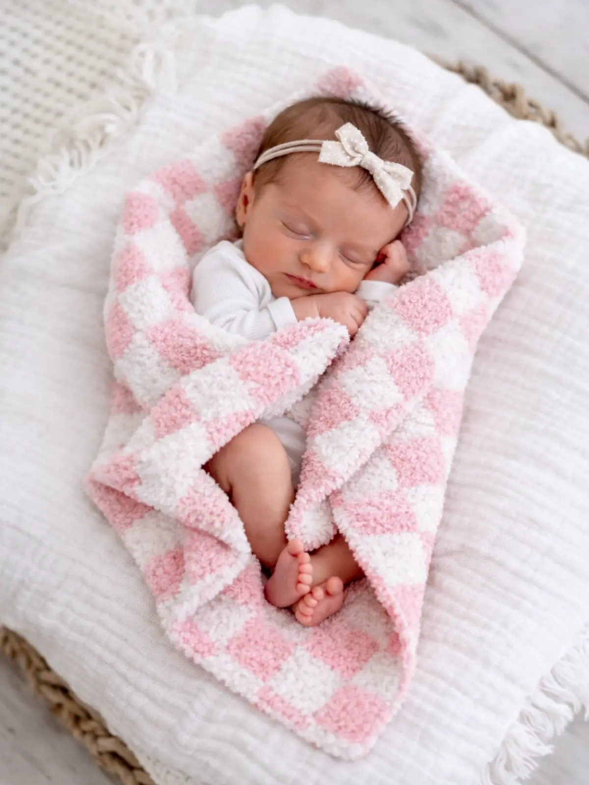 5. Phufy® Bliss Checkerboard Mini Blanket, Strawberry