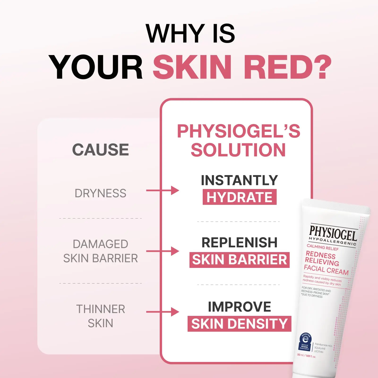 Visible Results in 3 Days – Clinically tested to visibly reduce redness within 3 days, with 96% of users reporting more glowing and firmer skin. Redness, dryness, and discomfort are significantly reduced. Awarded the National Eczema Association (NEA) Seal of Acceptance, ensuring trusted, dermatologist-recognized care.