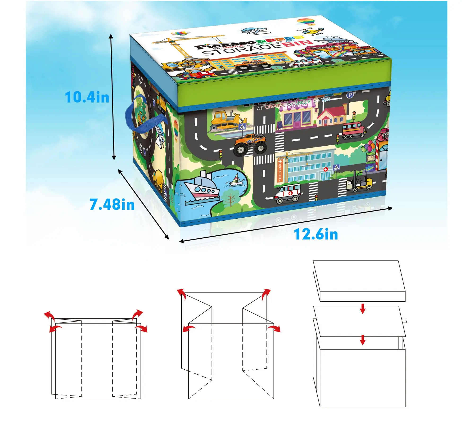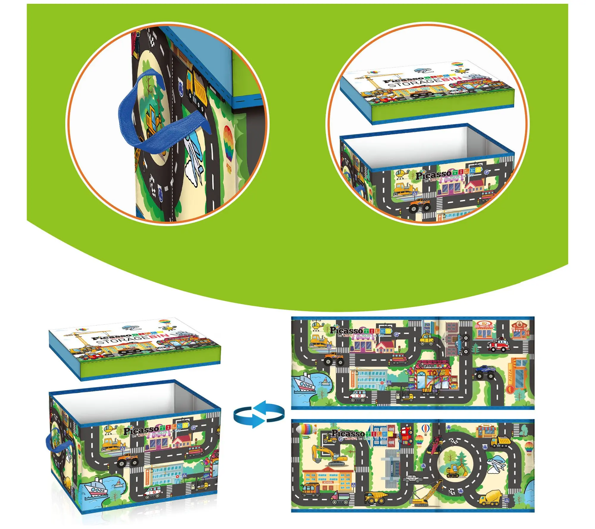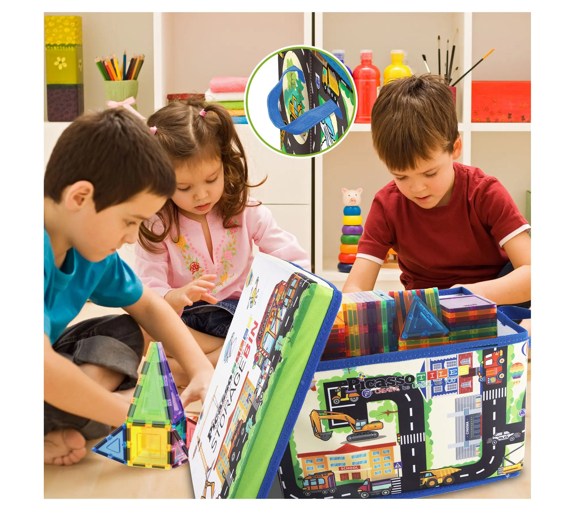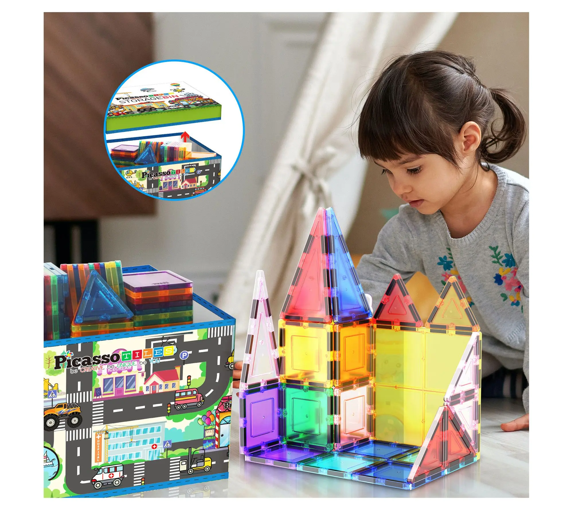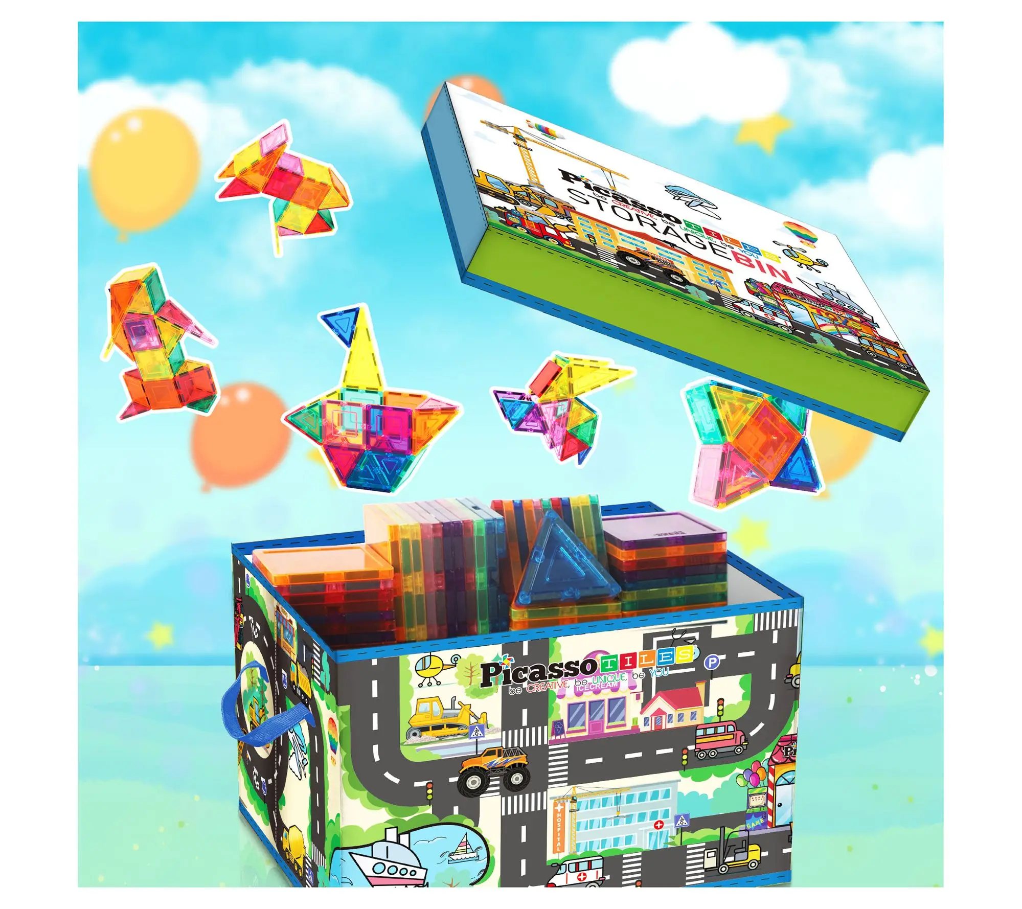 Keeping your child's play area tidy and engaging just got easier with the PicassoTiles city-themed storage box. This portable organizer is perfect for PicassoTiles magnetic tile building blocks and other small toys. Light and easy to handle, it folds neatly for storage, making cleanup a breeze after a busy day of play. From PicassoTiles.