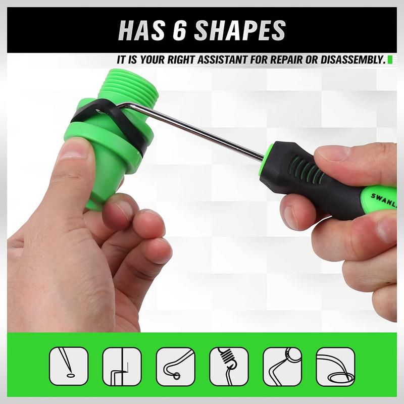 ·Includes 90 degree hook, 90 degree Hook, large full hook, straight pick, small full hook, combination pick, offset pick, hose pick, cotter pick.and a pouch which is convenient to store and carry.