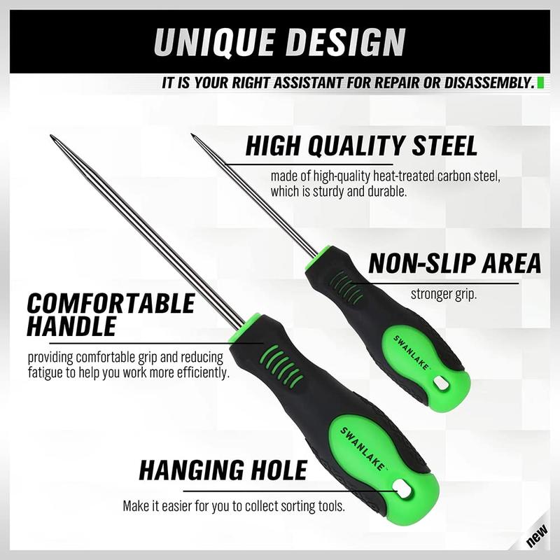 ·This hook and pick set is made of heat treated CR-V steel and chrome vanadium steel shafts, sturdy and sharp.