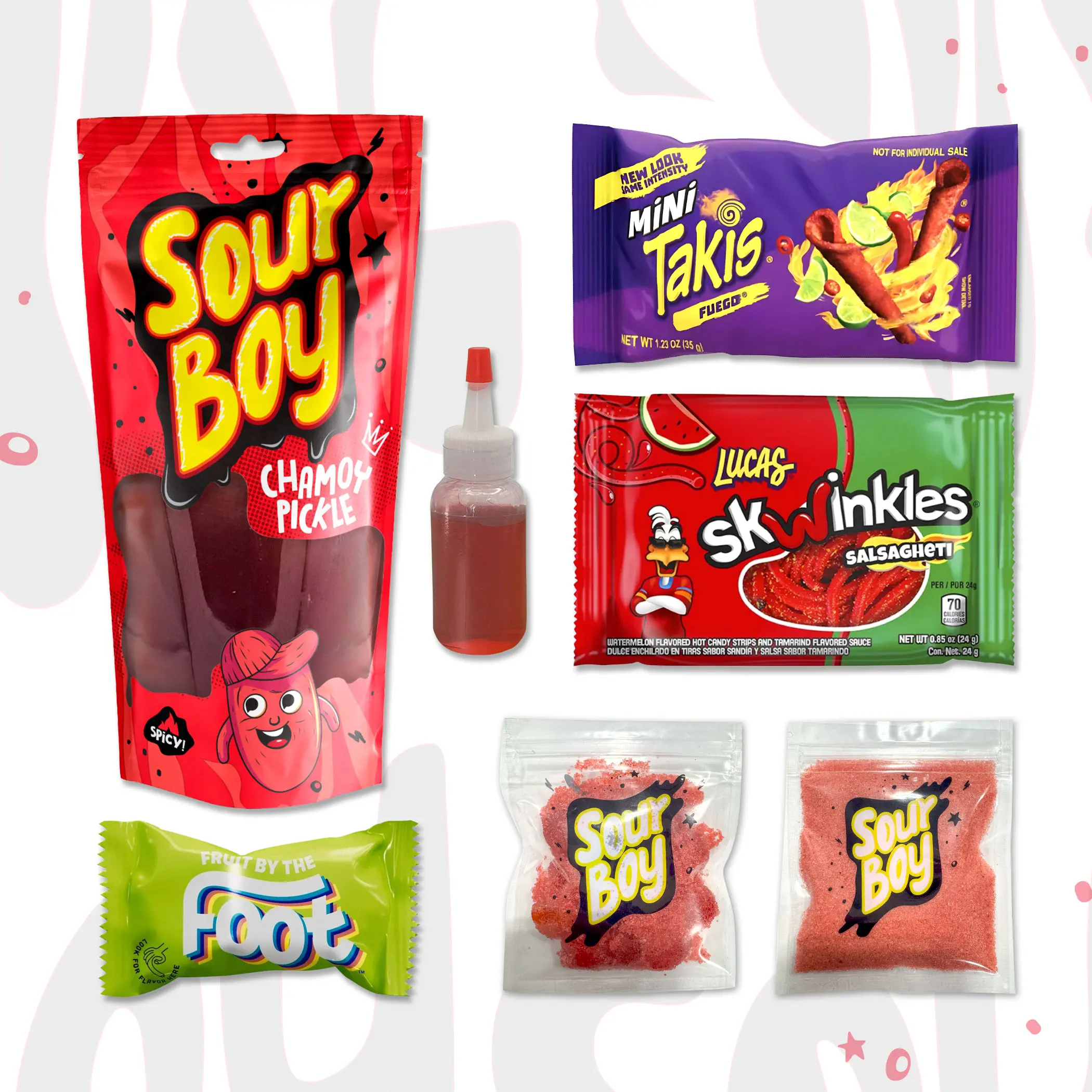 ·Sourboy Chamoy Pickle – The centerpiece of the kit! Made by Sourboy, this pickle is the ultimate chamoy creation, with a perfect balance of tangy, sweet, and spicy flavors.