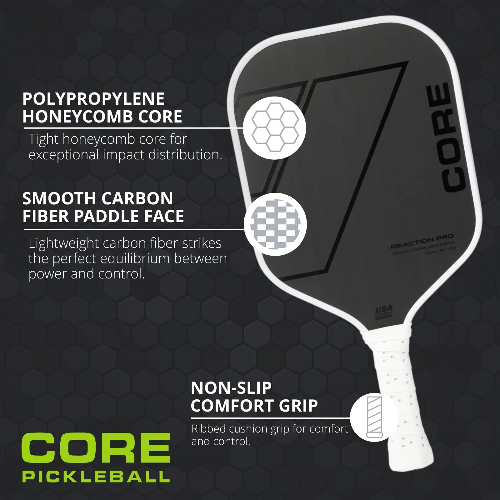 Paddle felt amazing good grip . Sadly after 1 game the handle broke. It was a warm up game so I wasn’t using it very hard . Will get a replacement one to see if it’s worth it