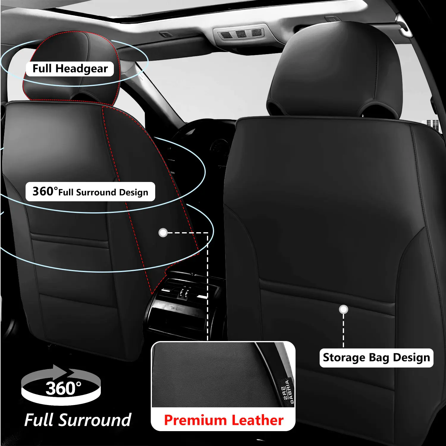 【SAFETY & CONVENIENCE】: Fully encapsulated design with reserved airbag exit to ensure that the airbag can function in case of emergency. Reserved seatbelt exit will not affect the use of child safety seats, while the front seat backrest has pockets for what you want to put.