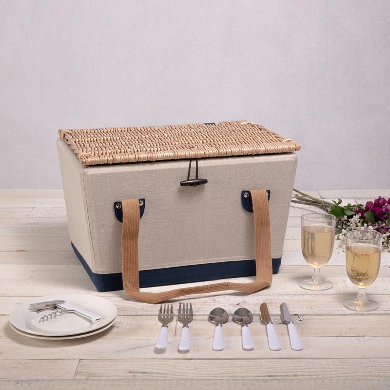 5. Boardwalk Picnic Basket for 2, (Beige Canvas with Navy Blue Accents)