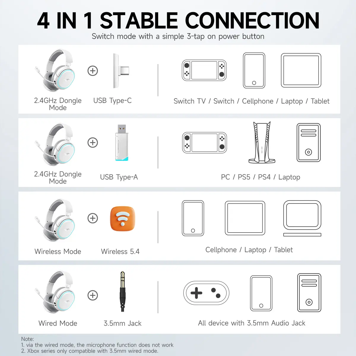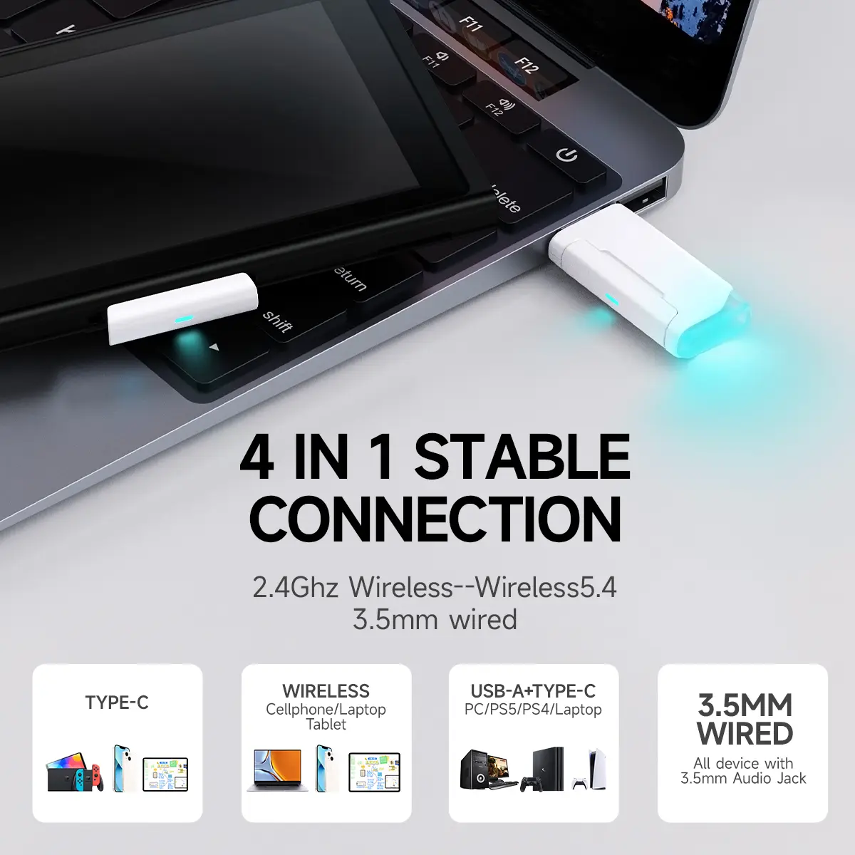 ·Versatile 4-in-1 Audio Cable: Seamlessly connect via Bluetooth or wired modes, giving you flexible options for any device.