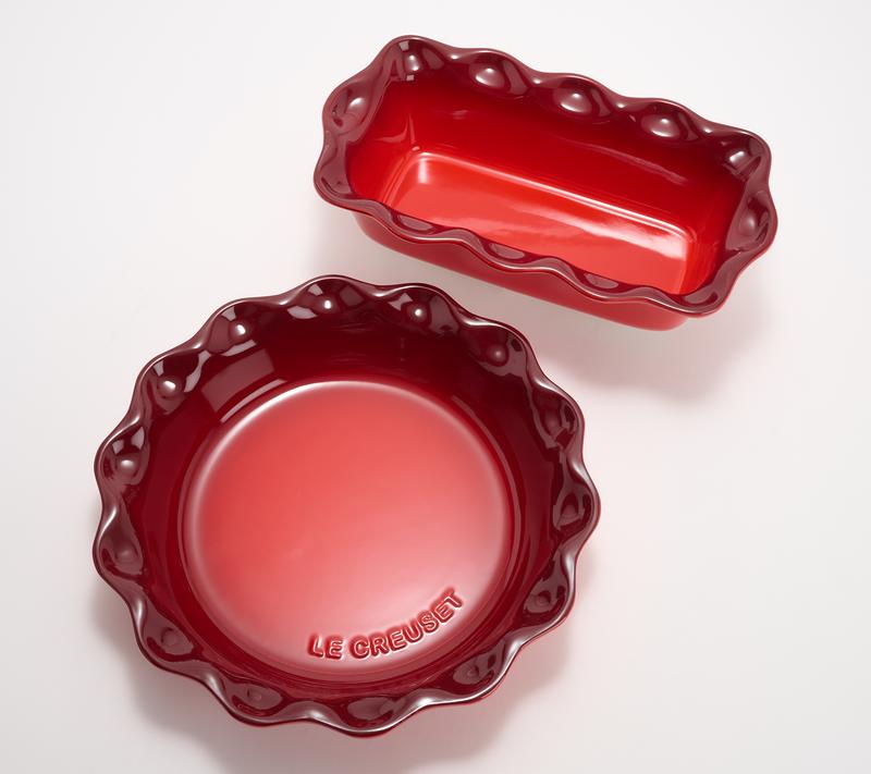 Memorable meals are easy to master with this Le Creuset pie plate and loaf pan set. Perfect for sweet or savory pies and baking fresh bread, these pieces ensure even cooking and a beautiful presentation at your table. From Le Creuset.