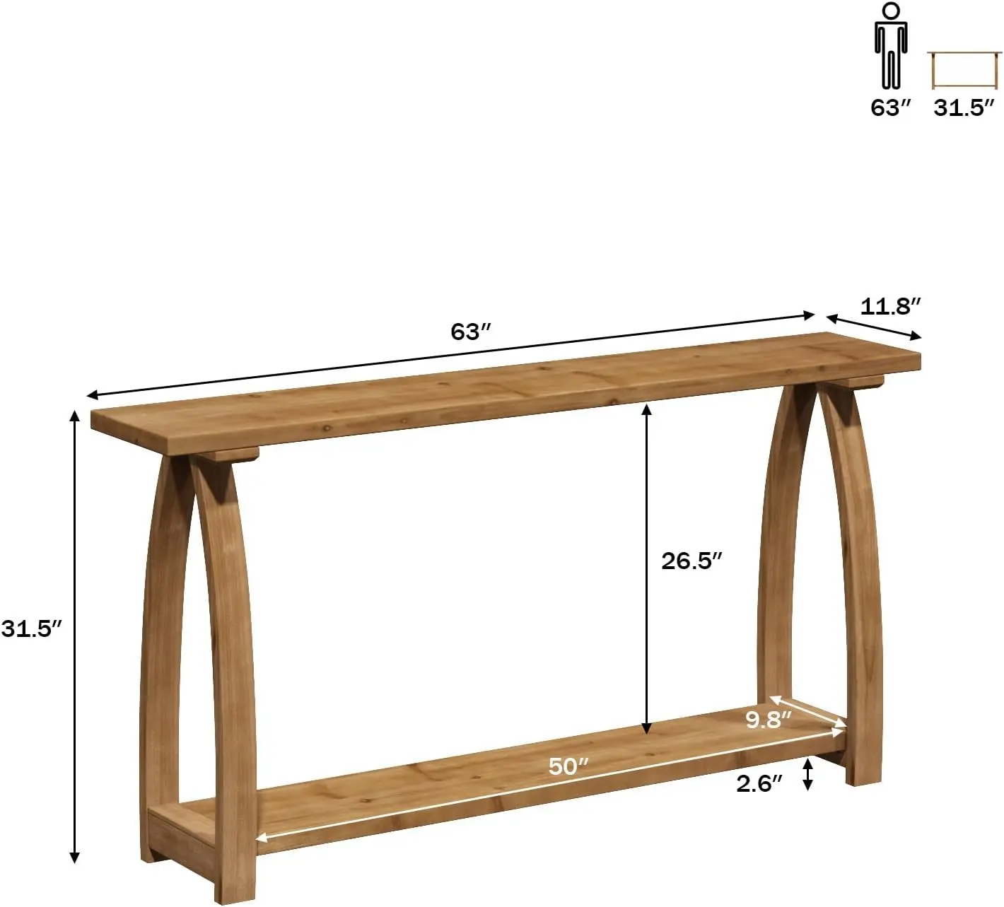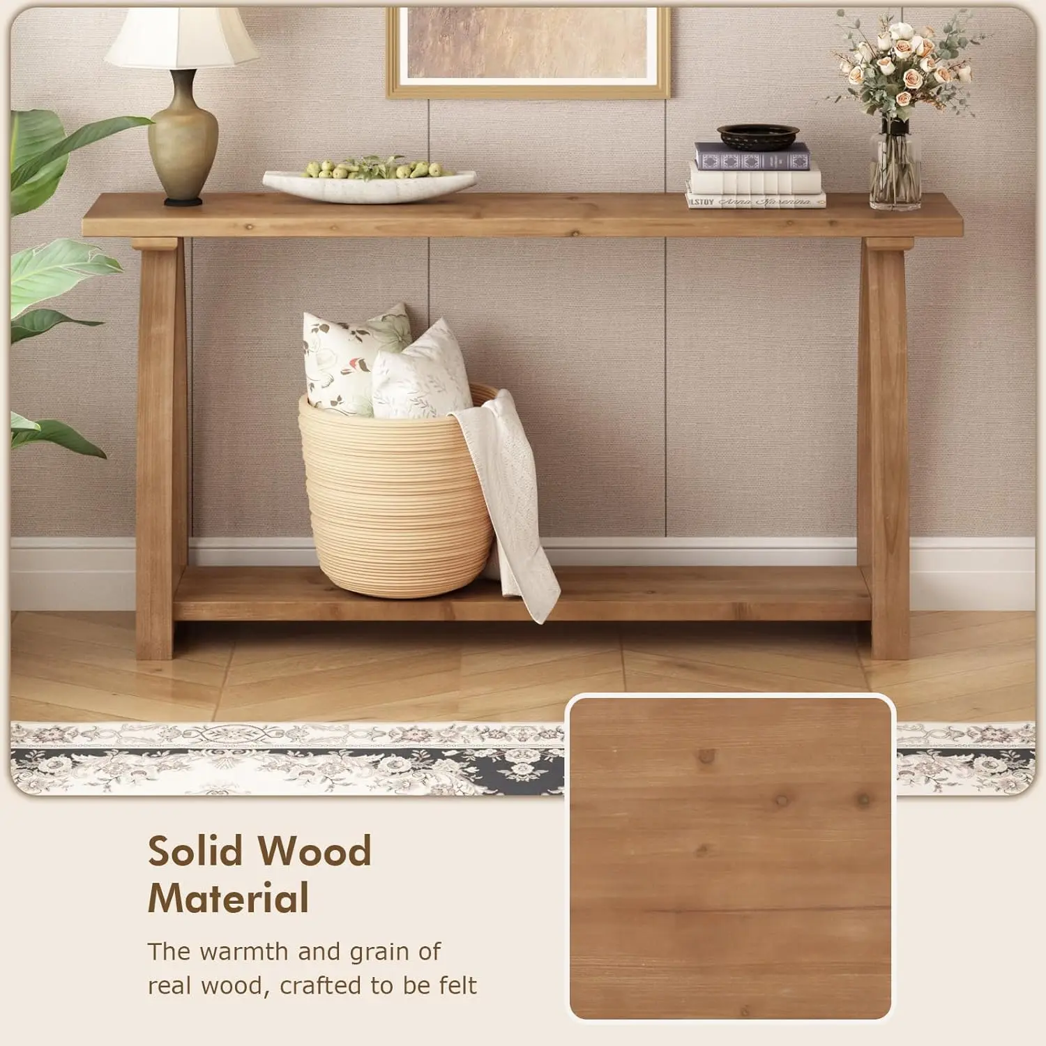 ·-S100% Solid Wood | Crafted entirely from solid fir wood, this rustic behind couch table showcases preserved natural knots and wood grain, each telling a unique story. Its robust build and authentic texture make it a timeless centerpiece, perfectly suited for farmhouse or transitional interiors in your entryway, hallway, or living room.