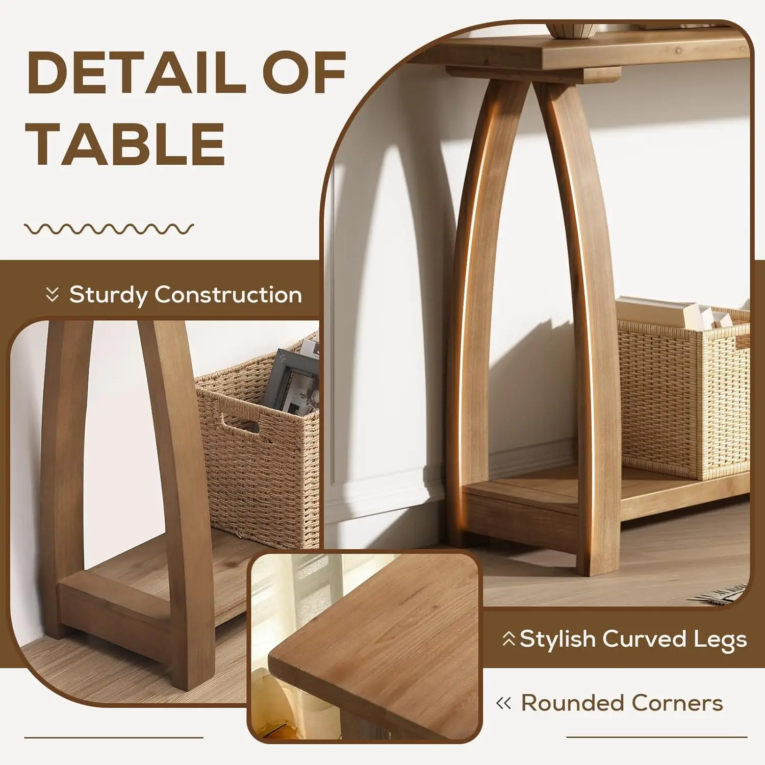 ·Eye-Catching Curved Legs | Featuring beautifully curved legs that add a touch of rustic sophistication to any space. Its slim, narrow, and thin design fits effortlessly into tight areas, making it an ideal skinny console for behind the sofa, in a small entry, or along a hallway—blending farmhouse charm with modern simplicity.