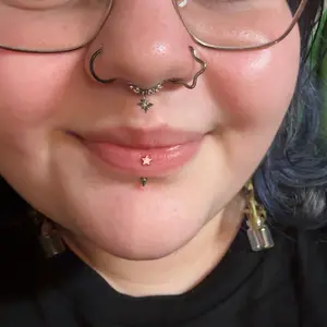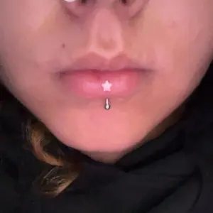 i love this jewelry it's so cute, comfortable, and it sits flat on my lip, I keep forgetting it's there and thinking my piercing fell off because I'm used to the ball but it keeps me from fidgeting with my piercing as well, and I just love stars sm so this is absolutely like my favorite jewelry piece i have now, and i'm never taking it off 🩷 (plus i love the little package it came in)