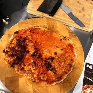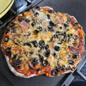 Quick and easy pizza! 6 mins from start to finish. Practice will make perfect not to over char the bottom. Very good! Highly recommend