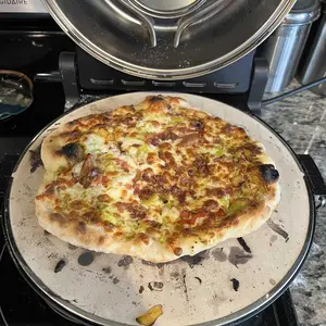 Very useful gadget! Bakes pizza and bread so quick. Heats quickly. Nice and crispy crust.