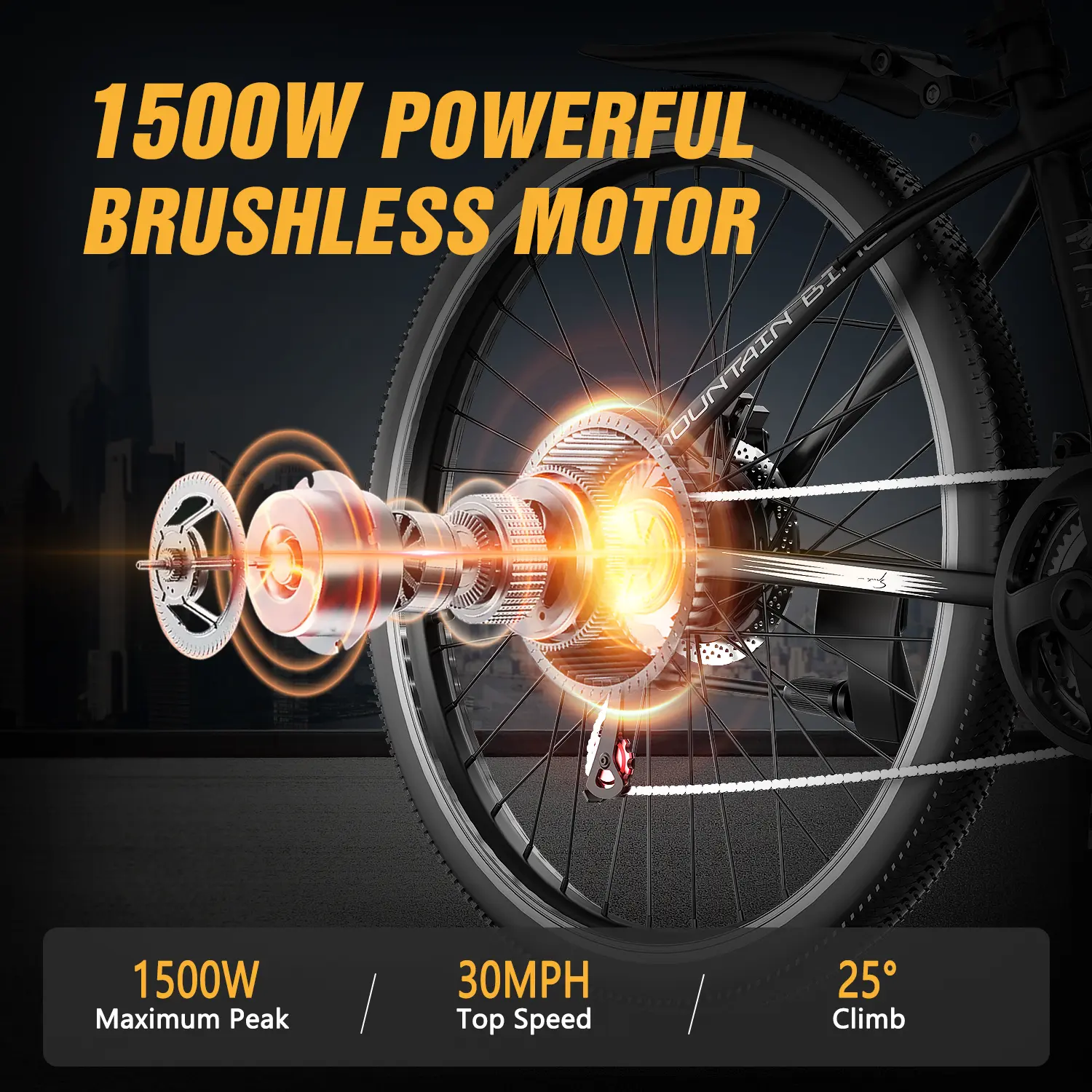 🚴 Conquer Any Trail – 1500W Peak Power: Tackle hills and rough terrain with ease. This e-bike hits speeds up to 30MPH with a 1500W peak (750W rated) motor for powerful, responsive performance.Note: 1500W is short-term peak power; sustained power is 750W.