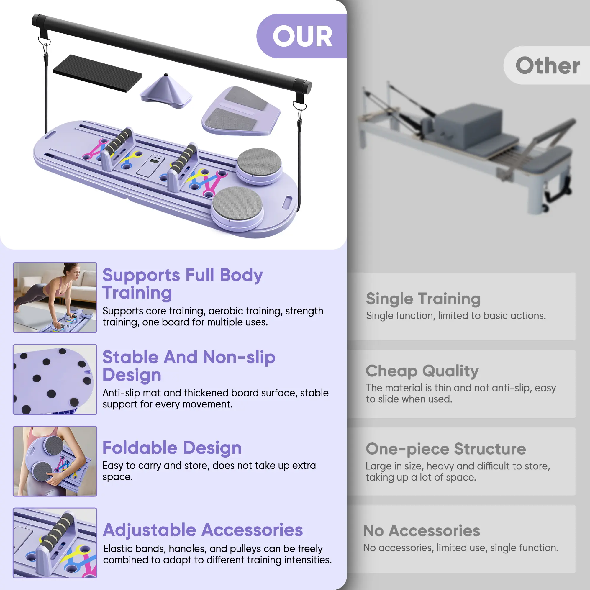 ·Multifunctional Abdominal Board: This Pilates Reformer is designed for multifunctional use, making it perfect for abdominal workouts. It's an essential piece for your home exercise routine. 🏋️‍♀️