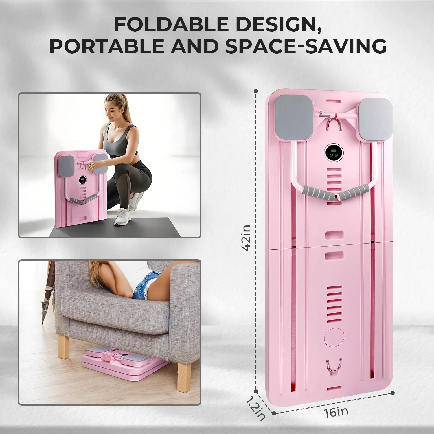 FOLDABLE DESIGN: The portable Pilates board can be folded and stored, easily placed in all corners of the home, the included carrying bag allows you to easily store all the accessories of this multifunctional Pilates board, saving a lot of space.