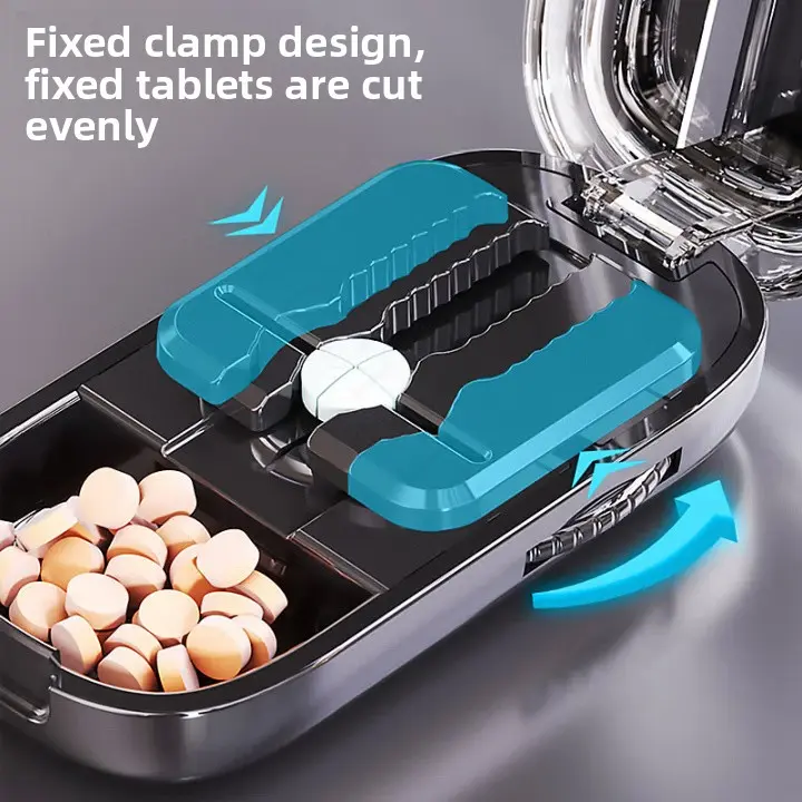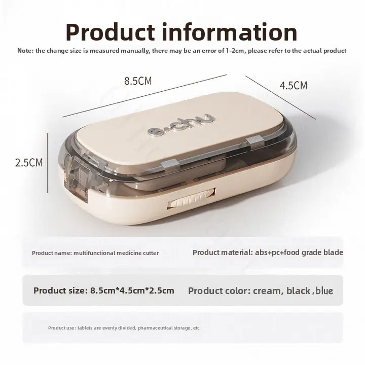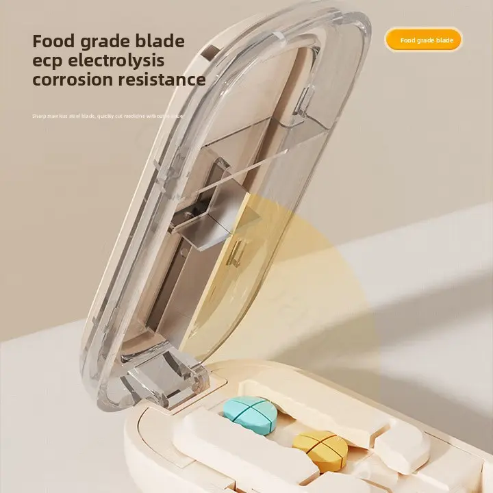 Equipped with a multi-pill cutting tool made of sturdy ABS+PC material. Streamlines daily pill splitting—safely and efficiently divides multiple pills for regular use.