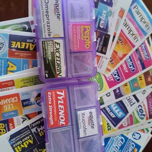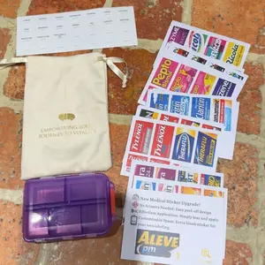Absolutely obsessed with this! Has so many stickers for literally every medicine you can think of and brands and also has blank ones for any prescription medication or something not included. Hold a lot and closes up nice and compact so I can throw it in my bag and a great price ❤️highly recommend!
