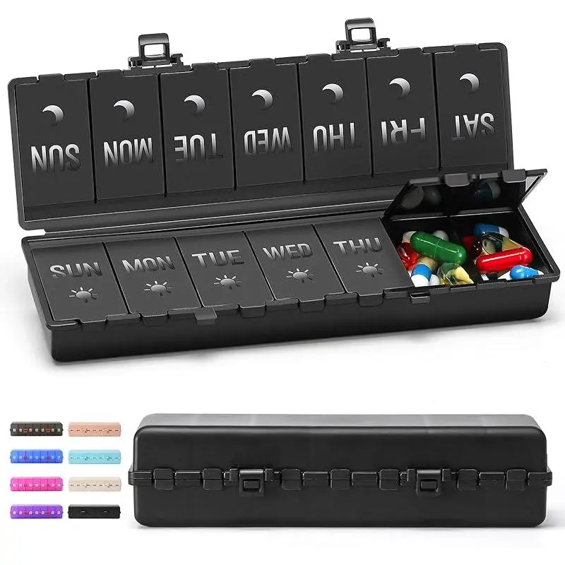 ·★LARGE CAPACITY COMPARTMENTS - Each compartment measures - 1.1"W x 2"L x 0.9"D. Sufficient capacity for 7 day or daily large/small/mini medications, vitamins, supplements and more!