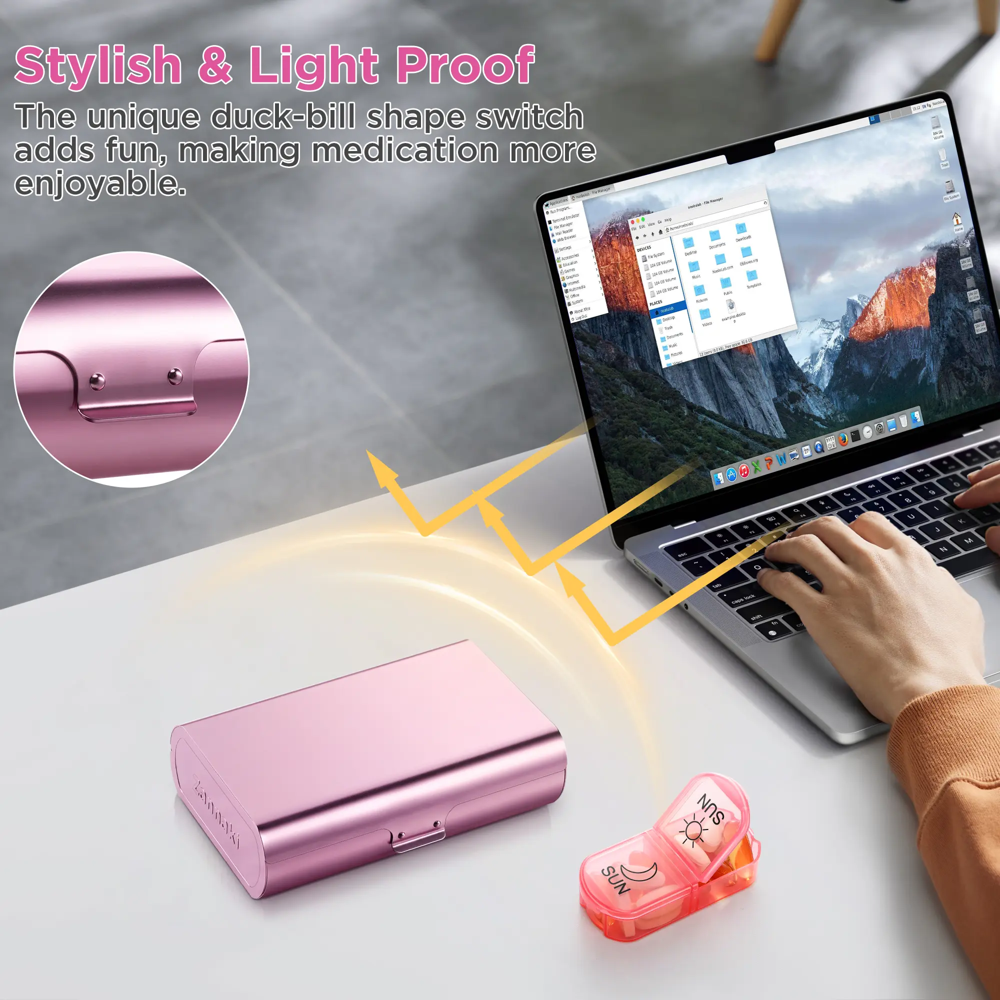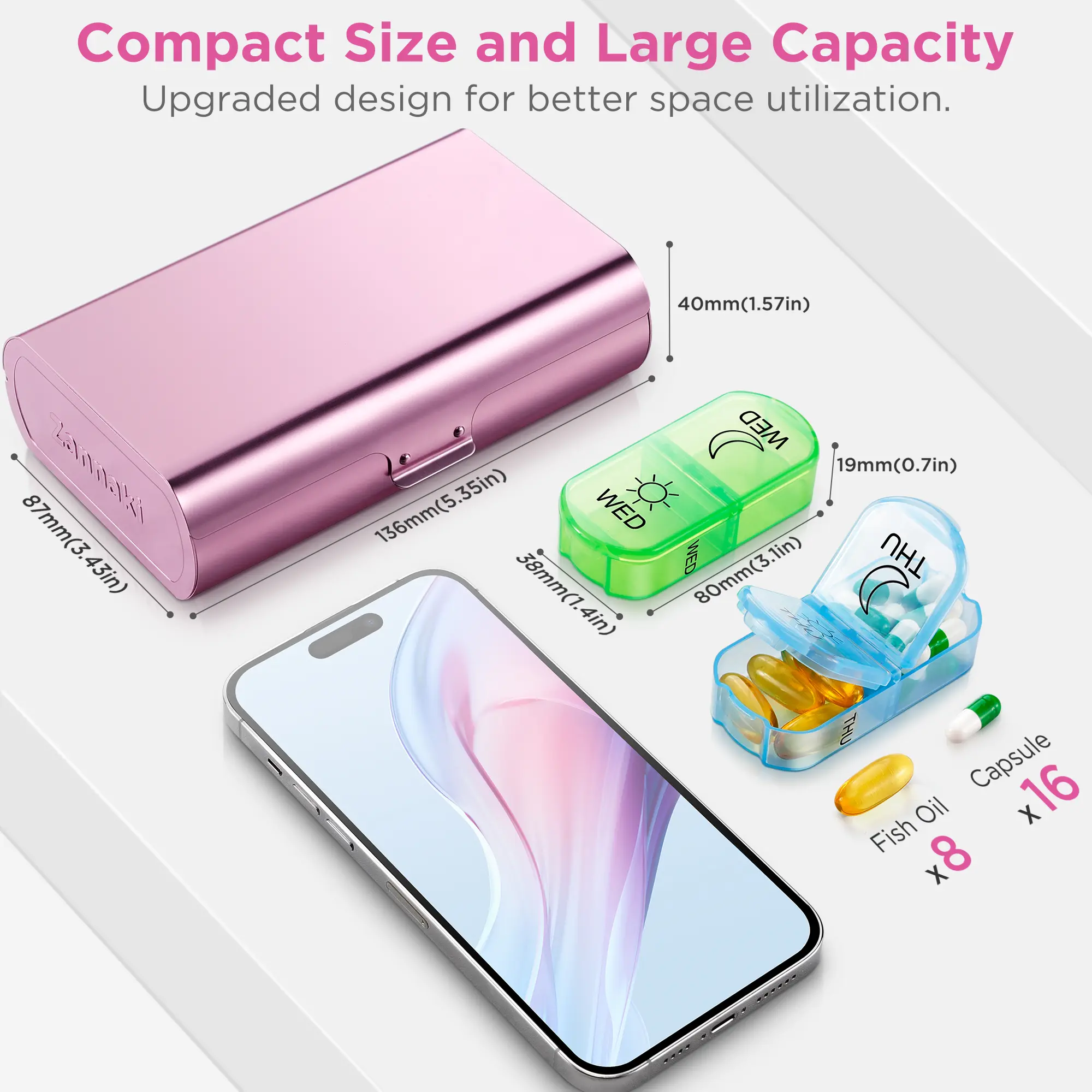 ·Professionally Certified Safe Quality: The outer shell of this 7 day pill case is lightweight and crush-resistant, made of ultra-sturdy anodized aluminum. The internal pill container is made of BPA-free, food-grade material. These premium materials ensure a sleek and stylish look and provide ultra-safe use. The solid quality can withstand the test of time and provide you with long-lasting service.