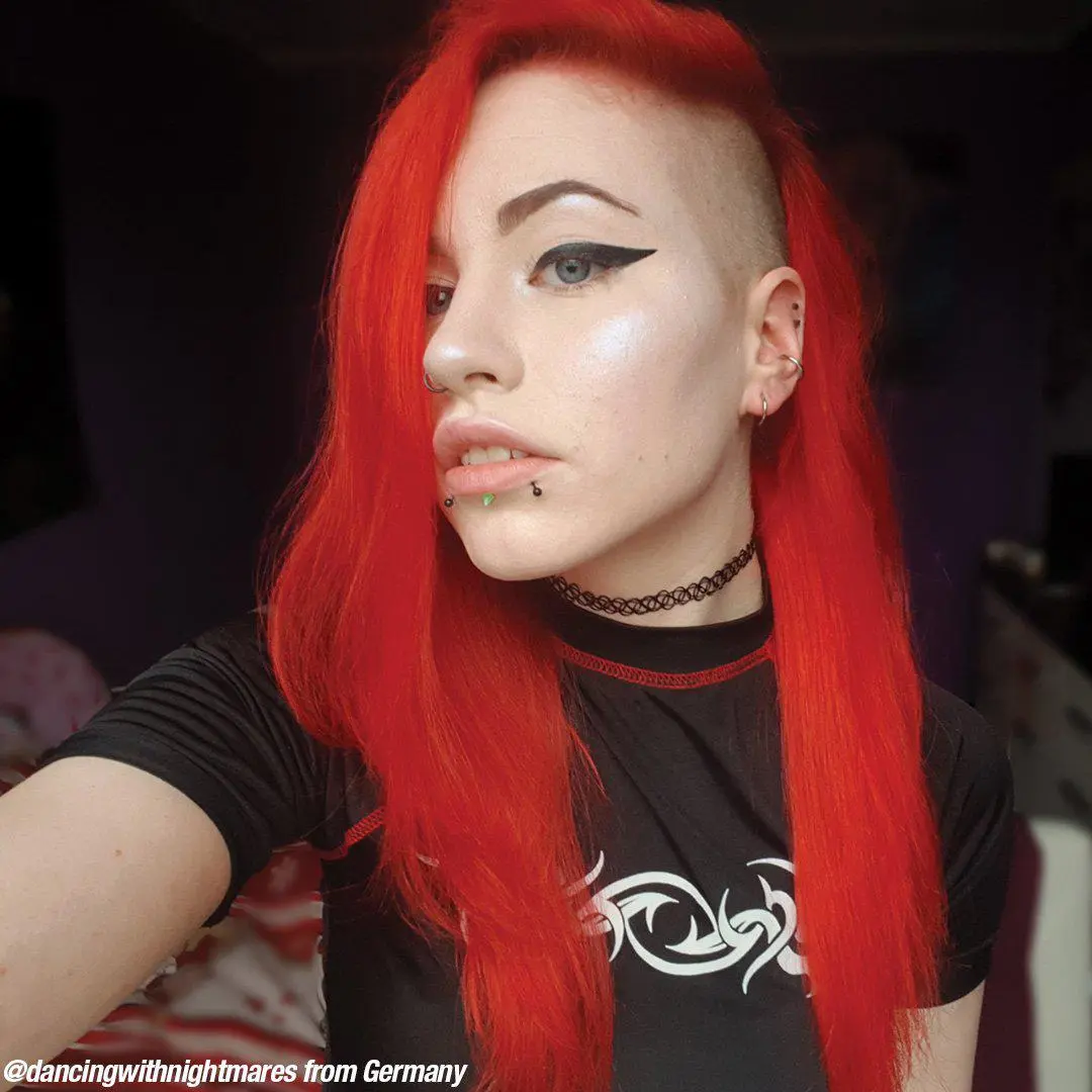 I love Manic Panic. But this color not so much. I pre-lightened as recommended before using Manic Panic dye, and after using this, instead of red my hair is hot pink. I’m pretty disappointed, I was looking for a red. Maybe if you’re at a 7-8 on the hair color scale pre-dye, try not lightening before using this one. I may give it anouther try later but for now I’m going to scrub my head with sulfate shampoo and go grab a color that hopefully won’t turn neon.