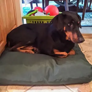 This is our 3rd K9 bed and just like the first two our Great Danes love them. Great quality and value for the money! Especially the waterproof cover. We have an older Dane who has an occasional accident and the cover makes clean up much easier. Even if your don’t have a dog the chews these are great beds!