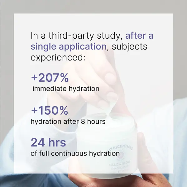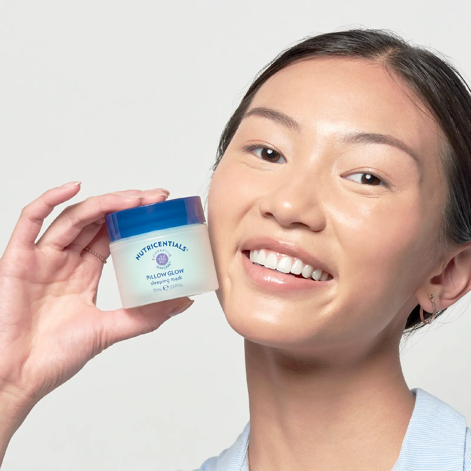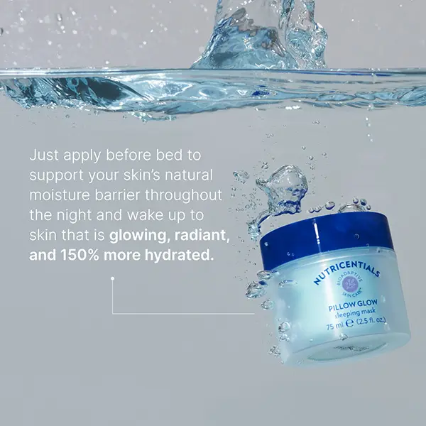 Wake up to radiant, hydrated skin with Nutricentials Pillow Glow Sleeping Mask—a moisture-recharging gel-cream that delivers an intense rush of immediate and long-lasting overnight hydration. Simply apply before bed to support your skin’s natural moisture barrier throughout the night and awaken to a glowing, radiant, and more hydrated complexion.