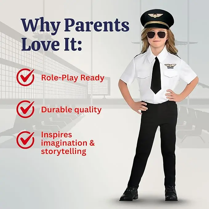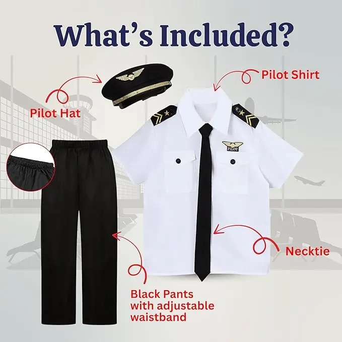 • NEVER THE WRONG TIME TO FLY - The pilot costume is a great costume to use all the time. The costume is great for Halloween, themed parties, career day, and role-play. It also a great gift for any aspiring pilot or any girl or boy. There is no wrong time to dress up!