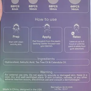 Awesome product at good price point. There are a lot of patches, in different sizes. Helped calm down my pimples and heal them quickly.