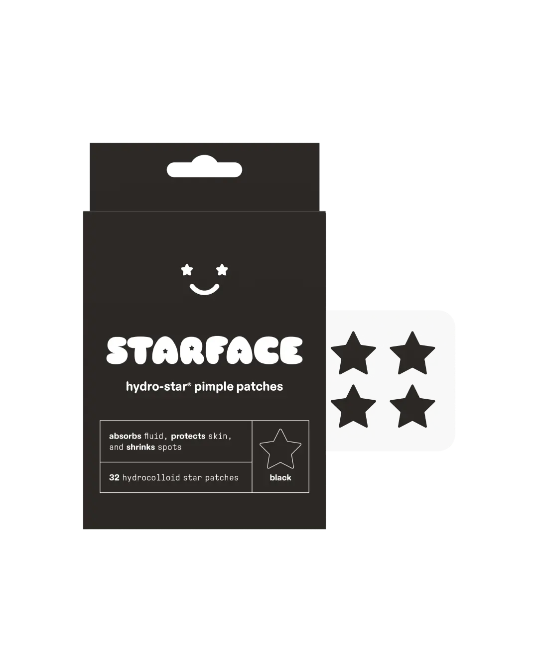 Have fun shrinking spots and feeling cute with 32 hydro-star pimple patches in black.