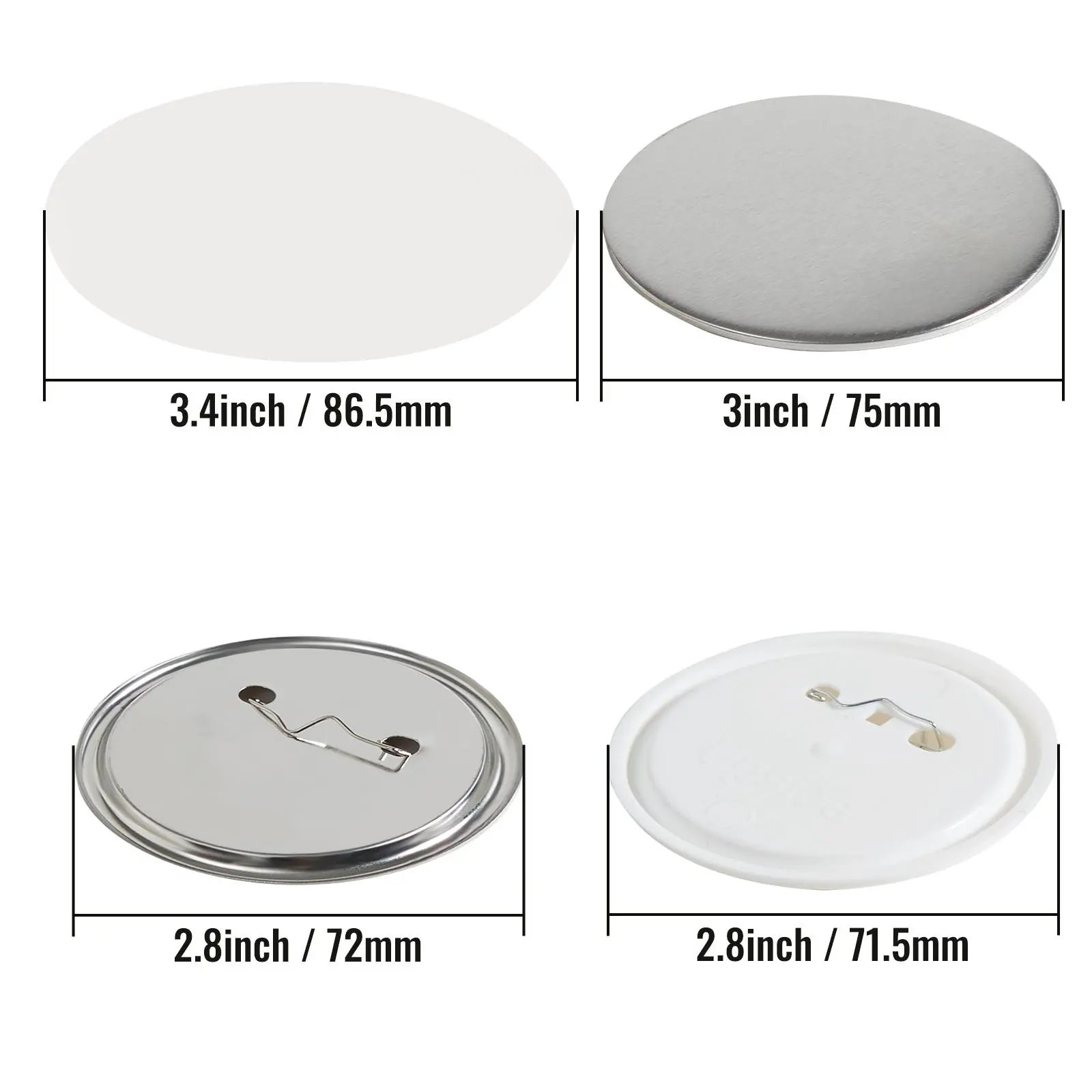 • All Set for Crafting: You will get 200 sets of pinback button parts to make 200 pretty button badges, including 200 pcs transparent films, 200 pcs metal covers, 100 pcs metal bottom parts, 100 pcs plastic bottom parts, and 2 washes. The number of all parts is the same. In addition, different metal and plastic bottom parts can satisfy your different needs.