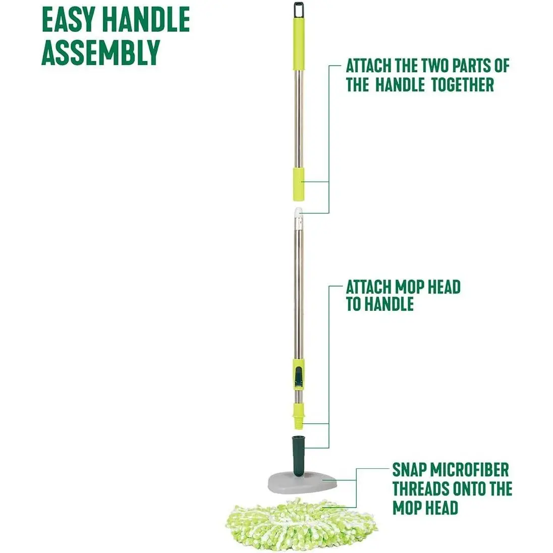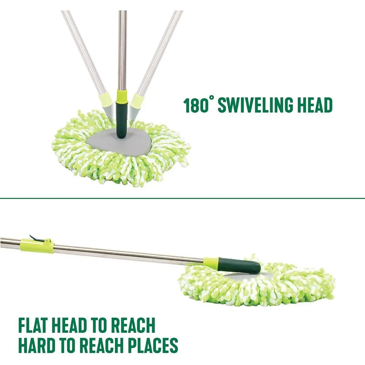 Swivel Mop Head: Swivels 180 degrees and goes flat for hard-to-reach areas.