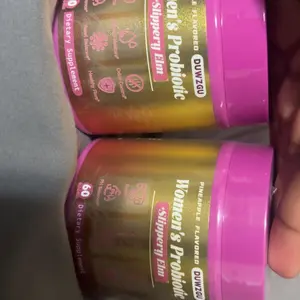 Just received brought because they are a great price and every woman over 40 need a probiotic. Don't know about the slippery box will keep you posted lol