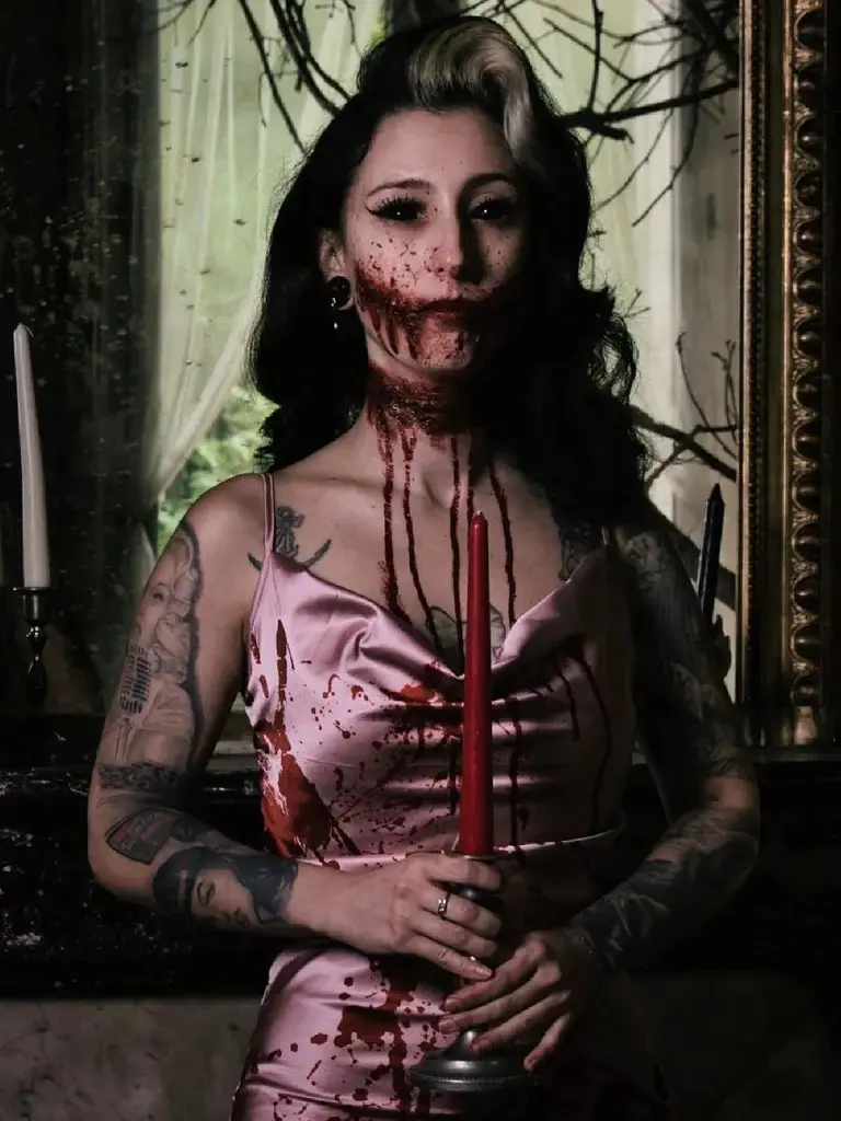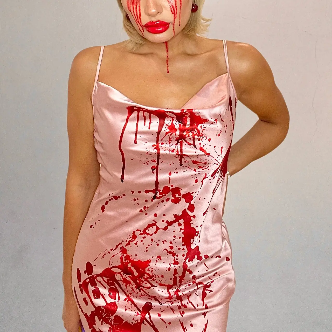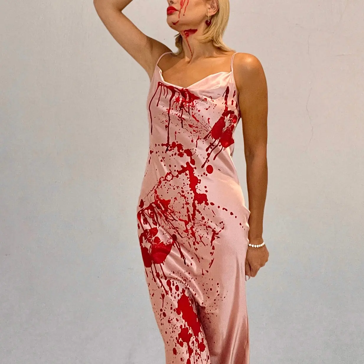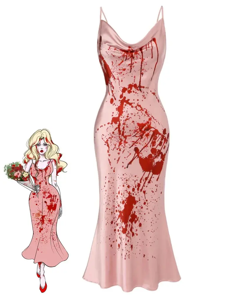 🎃 Pink 1930s Halloween Blood Fishtail Dress 🎃