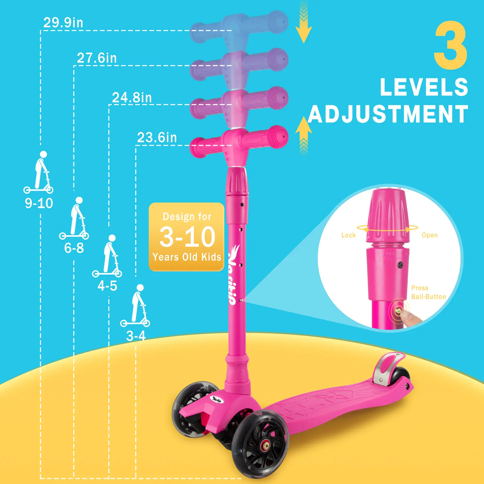 5. 【Christmas Gift】Pink Adjustable Kids Kick Scooter For Ages 3 To 12 With Lean To Steer Technology Flashing Wheels And Durable Aluminum T Bar For Boys And Girls Pink
