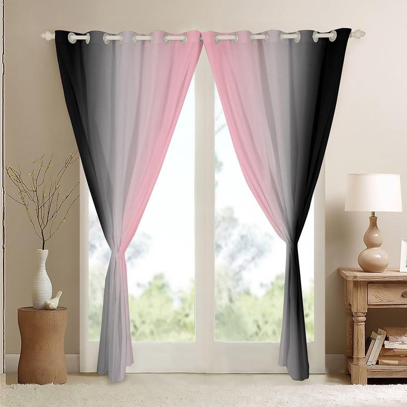 🌟 Pink and Black Curtains for Bedroom (2 Panels) 🌟
