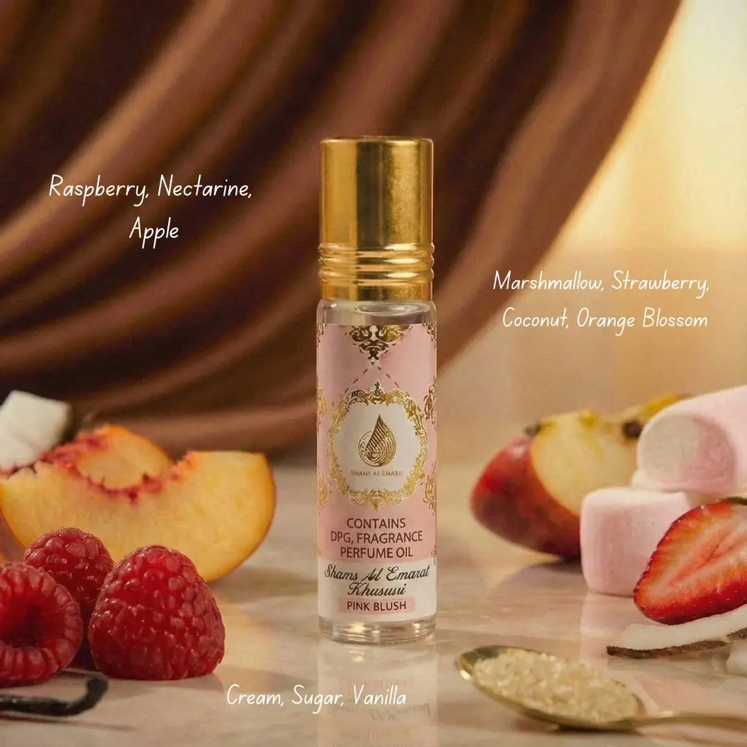 Experience the enchanting allure of Pink Blush Shams Al Emarat Al Khususi, a fragrance that captures sweetness, warmth, and timeless elegance. The scent begins with a vibrant blend of raspberry, nectarine, and crisp apple, offering a fresh and fruity opening.