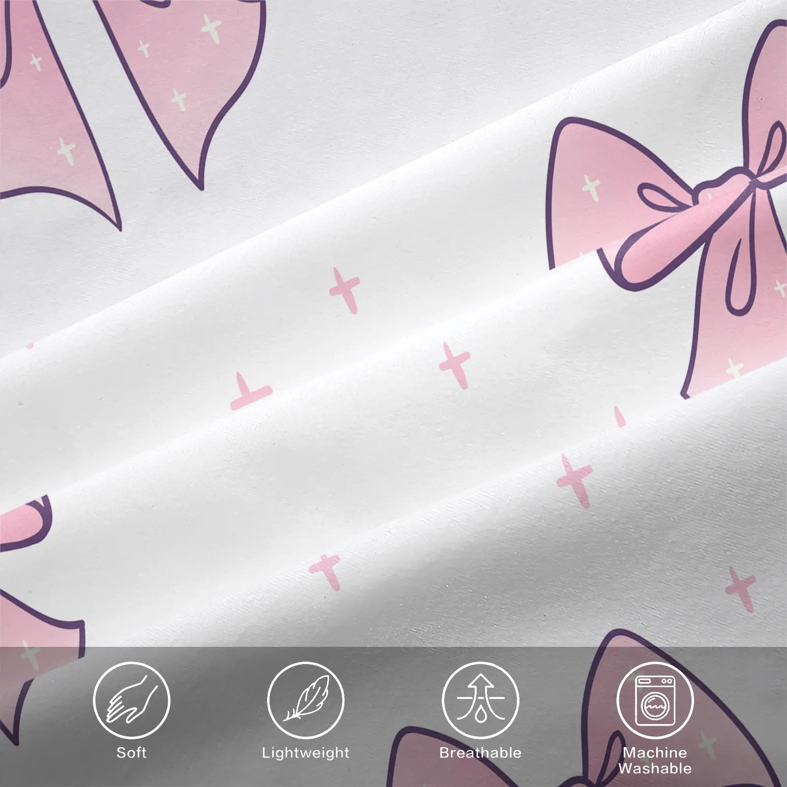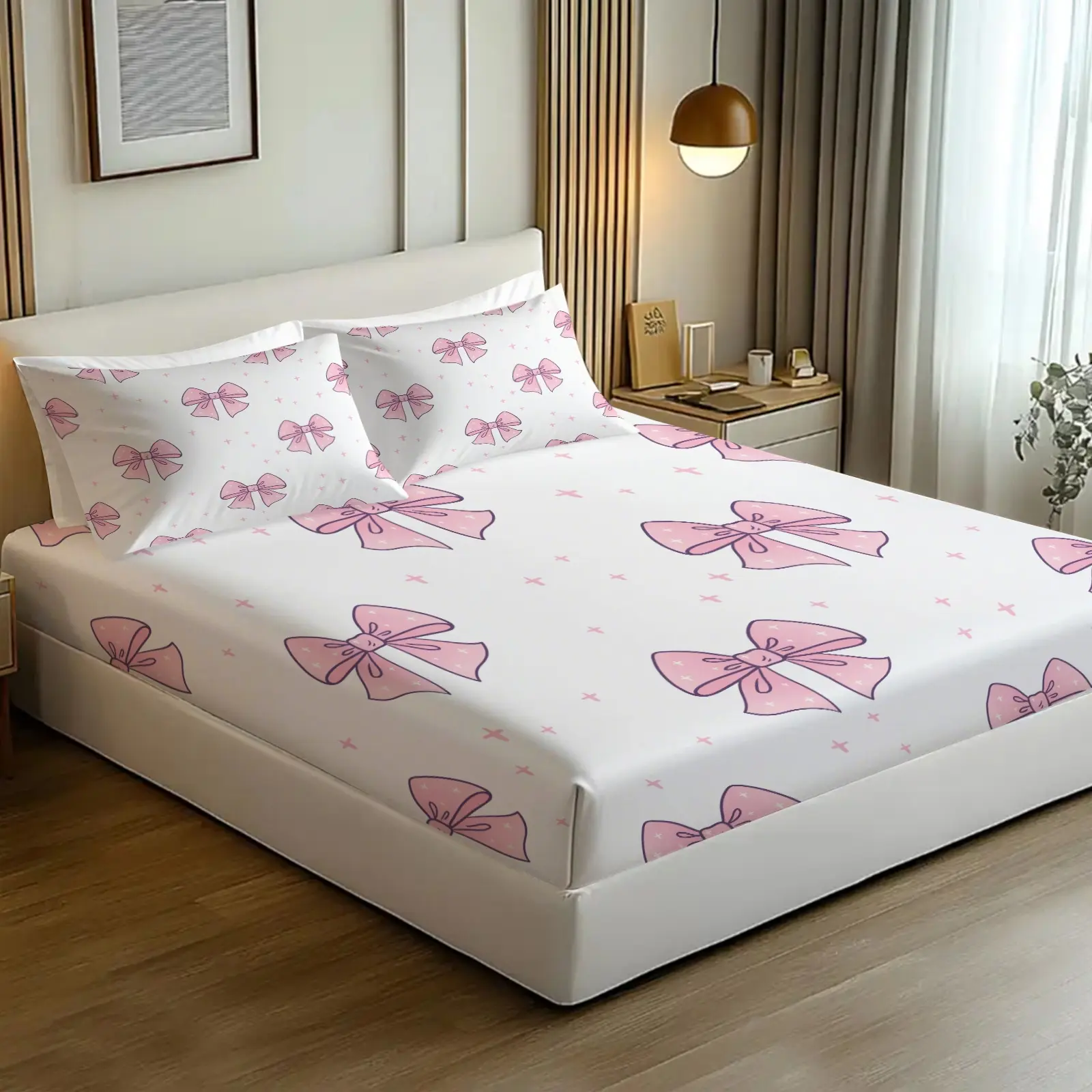 Pink bow bed sheet with comfortable printed pattern, including 1 bed sheet and 2 pillowcases, comfortable bedding, anti slip dust cover suitable for bedrooms and guest rooms, suitable for adult bedroom and guest room decoration gifts, Bed Sheets Set