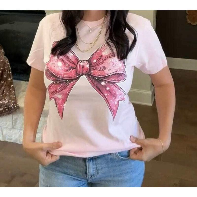 This Pink Bow Graphic Tee is perfect for adding a pop of color and style to any outfit! Made with high-quality cotton and featuring a playful pink bow graphic, this tee is both comfortable and fashionable. A must-have addition to your wardrobe!
