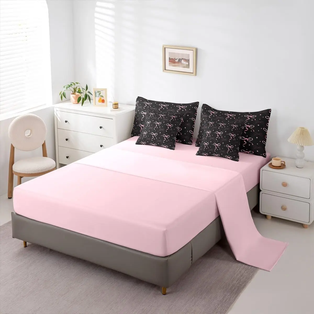 5. Pink Bowknot 7 Piece Bedding Set,Black Bow Knot Comforter Set with Sheets, Bow Tie Butterfly Knot Bed in a Bag,Coquette Aesthetic Bed Sets