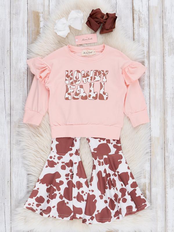 Pink & Brown "Howdy Fall" Cow Print Bell Bottoms Outfit