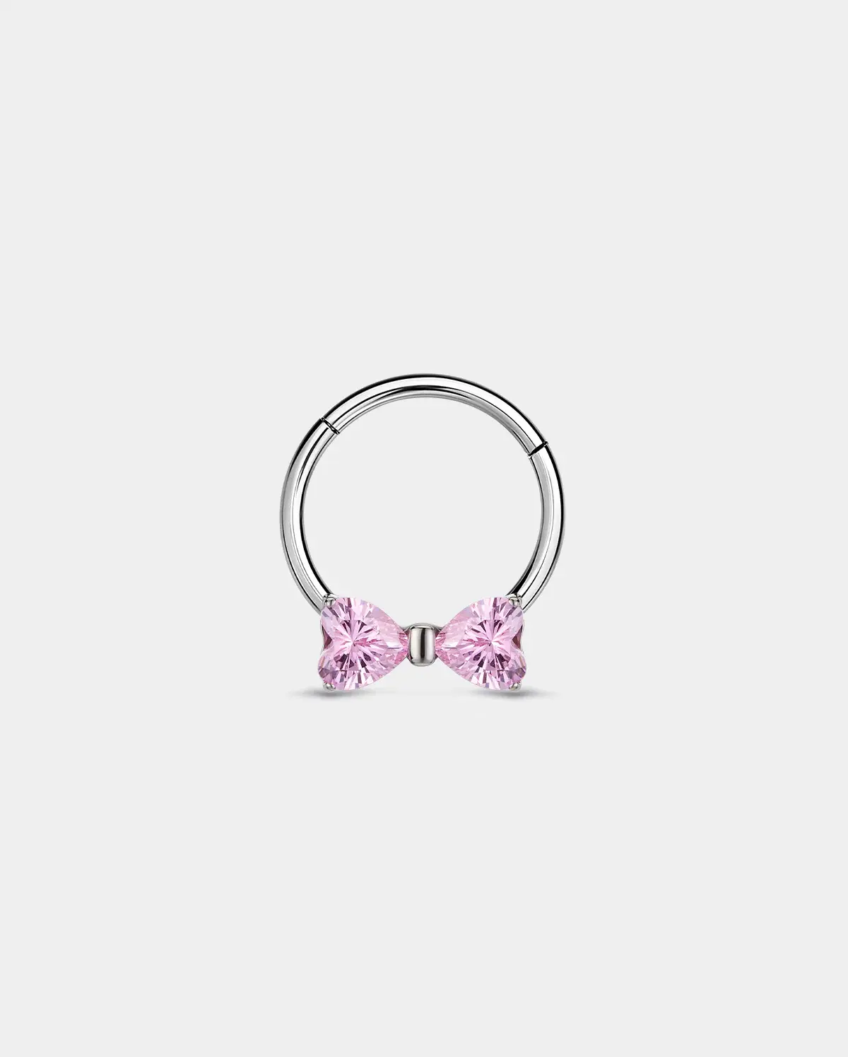 Designed around the idea ofconfident softness, this pink CZ bowseptum ringblends a romantic bow motif with delicate blush-toned stones.The smooth hoop silhouette keeps the look clean and wearable, while the bow detail adds a subtle touch of femininity —perfect for everyday wear with personality.