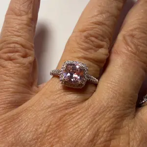 She is absolutely stunning 😍 gorgeous is an understatement! Fits perfectly true to size. The prettiest ring I have seen in person. All the pink is so so pretty 😍