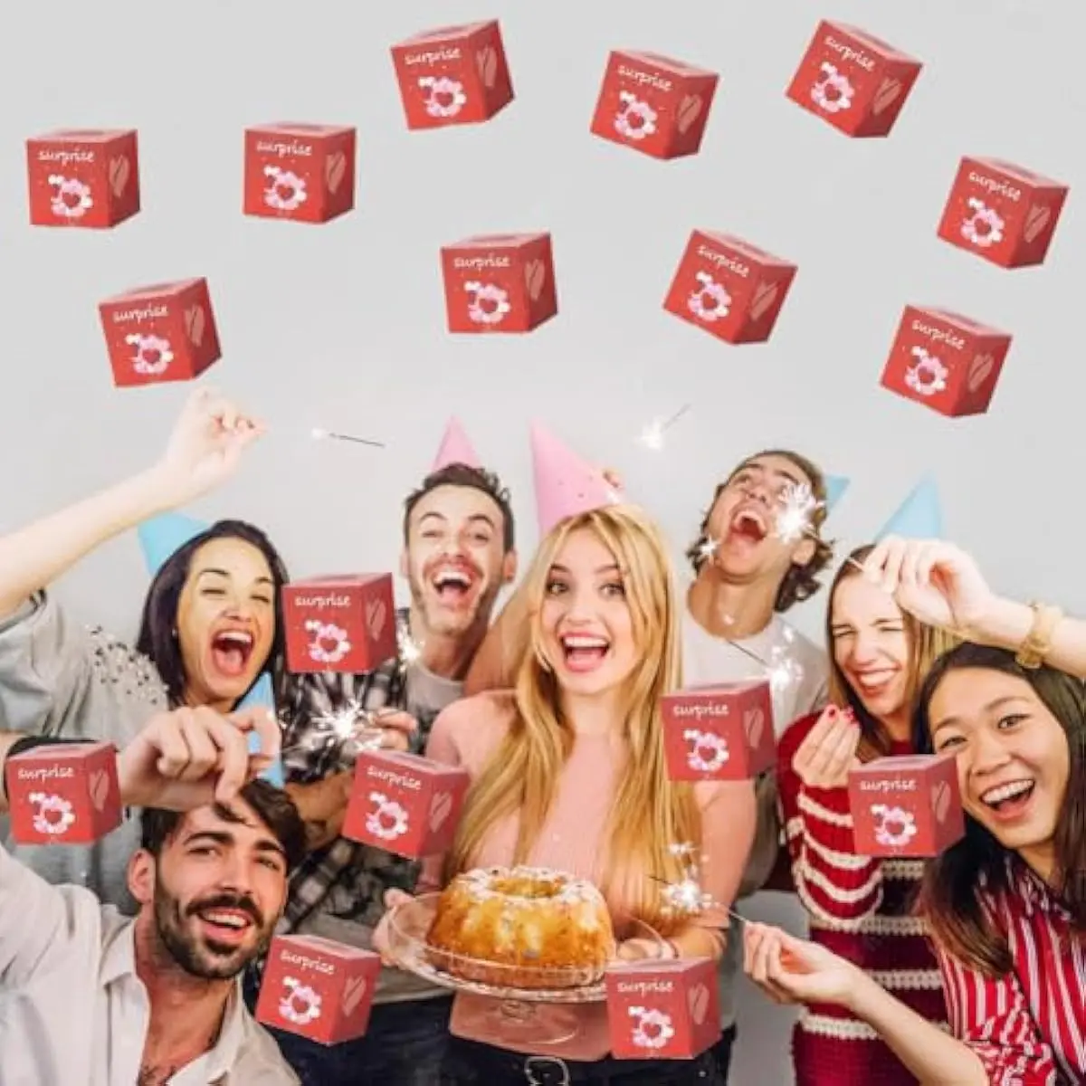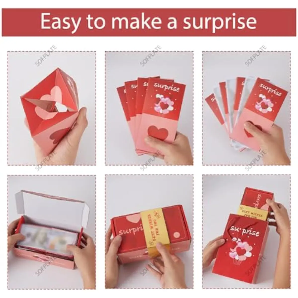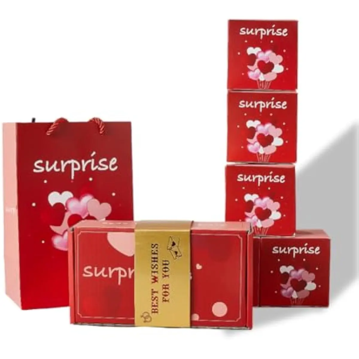 Pop out birthday gift boxes feature: With this gift box, you have the freedom to customize it to your heart's content. You can insert photos, write sweet messages, or place small keepsakes on the pop out cards. When the gift box is opened, these added items, along with the red heart patterned cards, will pop out, creating personalized moment of happy surprise!