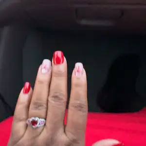 Shipping was super fast. The design is cute and different for Valentine's Day. However, had I known this design was on white press ons, I would not have chosen it. The quality of the nail is a bit thin/cheap. My right thumbnail caught a snag and the paint is beginning to fade even after a top coat.